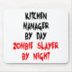 Dieses unheimliche, blutige Textdesign mit dem Satz "Küchenchef am Tag Zombie Slayer by Night" ist perfekt für jeden Küchenmanager, der Zombies Liebe!