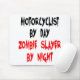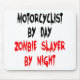 Dieses komische Textdesign enthält den Satz "Motorradfahrer am Tag Zombie Slayer by Night" und eignet sich perfekt für Motorradfahrer, die Zombies Lieben machen.