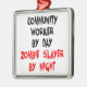 Dieses unheimliche, blutige Textdesign mit dem Satz "Community Worker by Day Zombie Slayer by Night" ist perfekt für alle Gemeindearbeiter geeignet, die Zombies Lieben machen.