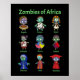 Zombie im Stile Kawaiis, die verschiedene Länder und Völker in Angola, Kongo, Ägypten, Äthiopien, Kenia, Massai, Marokko, Mali und Namibia vertritt.