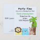 Le plus mignon tigre, lion et léopard met l'accent sur cette amusante invitation d'anniversaire à thème jungle. Des palmiers soufflent dans l'arrière - plan. Customisez avec tous vos renseignements personnels comme vous le souhaitez. Une invitation amusante zoo animal.