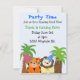 Le plus mignon tigre et lion vêtu de casquettes colorés de fête met l'accent sur cette amusante invitation d'anniversaire à thème de la jungle. Des palmiers soufflent dans l'arrière - plan. Customisez avec tous vos renseignements personnels comme vous le souhaitez. Une invitation amusante zoo animal.