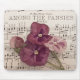 Ein Stillleben von vier rosa Stiefmütterchen auf einem Vintagen Notenblatt mit dem Titel "Unter den Stiefmütterchen". Fotografie von Sandra Foster © Sandra Foster Designs - Zazzle.