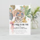Feiern Sie einen Geburtstag voller wilder Fun mit dieser spielerischen Too Wild to Be Five Dschungel-Geburtstagseinladung mit einem stilvollen Wasserfarben-Tiger, der eine rosa Sonnenbrille und eine festliche Partyhut trägt. Umgeben von tropischen Blättern, farbenfrohen Ballons und fröhlichen Party-Accessoires fängt dieses Design die Energie und Aufregung einer lebendigen Safari-Themen-Feier ein.