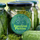Zucchini pickelt grünes weißes Glas Runder Aufkleber