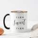 Chic Typografie Design mit "Farm Sweet Farm" Zitat. Klicken Sie auf Anpassen, um Schriftart und Farben zu ändern, oder fügen Sie Ihre eigenen Texte und Bilder hinzu, um ein einzigartiges Kaffeedesign zu erstellen.