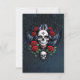 Zucker Schädelgel mit Rose. Eine faszinierende Figur, die die perfekte Symbiose aus gotischer Ästhetik und romantischem Flair verkörpert. Der Fokus liegt auf einer Frau mit ausgefeilter Zucker-Schädel-Make-up, die in lebhaften Farben glänzt und auf ihrem Gesicht zarte Muster zeigt. Ihre großen, ausdrucksstarken Augen fesseln den Betrachter und vermitteln sowohl Stärke als auch Verletzlichkeit. Ein zartes Muster hängender Perlen verleiht der Szene eine zusätzliche Dimension und macht sie fast wie ein Traum, ein Design, in dem Schönheit und Dunkelheit harmonisch verschmelzen.