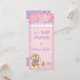 Dieser bezaubernde Welpe lächelt Ihre Gäste an und lädt sie ein, an Ihrem besonderen Tag für Ihre Babydusche teilzunehmen. Das Kunstwerk ist handwassergefärbt und enthält einen ausgestopften Welpen mit lila Bogen am Hals, einen lila Schnuller und rosa Rosenbude Hintern. Der Hintergrund ist ein sanftes Rosa mit handgemalten, weißen Wirbel, einer handgemalten Kreuzstich-Spitze und einer Rackkante, die oben ein zeitgenössisches, wirbeliges Herzpapier überragt. Die Rückseite hat einen lila Lavendelhintergrund mit Punkten und Kreisen. Auf dieser Grenze befindet sich eine Babyflasche, ein Binkie und das Paar Rose Bud Schuhe. Es gibt eine breite Produktpalette, die für die Koordination eines kompletten Baby-Set konzipiert ist. SIE KÖNNEN AUCH GENIESSEN: