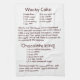 Dunkelbrauner Text auf weißem Küchentuch. Rezepte für den Schokoladenkuchen. Beide auf einem Handtuch!