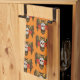 Eine braune große Hornkeule mit einem Tag des toten Zuckerschädels und rote Rosen in einem Hintergrund von Orange.