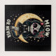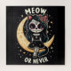 Das Design ruft ein Gefühl von mystischer Anziehung und verspieltem Rätsel hervor, indem es das Wesen einer Katze mit dem Tag des Toten Schminkes einfängt, der auf einem halbmondförmigen Mond inmitten einer sternenbefleckten Kulisse steht. Es ist eine Mischung aus kultureller Symbolik und kosmischem Wunder, eingebettet in einen skurrilen Kunststil.