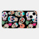 Helle und farbenfrohe Bilder von Zuckerschädeln machen ein lustiges Muster auf diesem einzigartigen Handy-Fall. Es gibt mehrere verschiedene Schädelbilder, alle individuell in verschiedenen Farben und auf einem dramatischen schwarzen Hintergrund platziert.