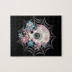 Dia de los Muertos (Tag der Toten) Zuckerschädel in Pastellfarben mit Blume Set auf einem Spinnennetz.