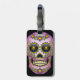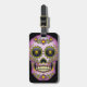 Dia de los Muertos Zuckerschädel ist so farbenfroh in lila mit Blume und goldglänzenden Augen.