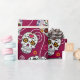 Eine farbenfrohe Geschenkpackung für den Tag der Toten, die eine Vielfalt dekorativer Zuckerschädel mit Blume und wirlfarbenen Akzenten auf einer fakultativen Rose rot, strukturiert. Wenn Sie es vorziehen, wechseln Sie zu einer anderen Hintergrundfarbe, indem Sie einfach die rote Ebene löschen. Suchen Sie ID725 um andere Farbauswahl und Produkte mit diesem lustigen Muster zu sehen.