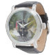 Uhr, Vintage Männeruhr mit schwarzem Lederarmband