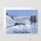 Eine winzige Aquarellmalerei und eine farbenfrohe Farbenlandschaft eines Zuges, der auf einem Abend im Winter durch die schneebedeckten Berge schlängelt. Anstrichen für Art-O-Mat. Passen Sie den Text an, indem Sie ihn selbst in Anzug umwandeln!