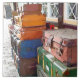 Eine einfache Aquarellgestaltung eines Bahnhofs während des Krieges. Auf dem Bahnsteig gestapelte Koffer wartete für den Dampfzug, um sie zu ihrem Ziel zu transportieren. England.