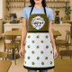 In der Mitte des Aufklebers oben auf der Schürze wird das Wort Kaffee mit einer Kaffeetasse und Kaffeebohnen geschrieben. Personalisieren Sie es mit Mitarbeitername, Barista-Name, Café / Bar-Firmenname oder für eine häusliche Verwendung mit Kaffee-Liebhaber-Namen. Der Boden ist mit kleinen braunen Kaffeebohnen dekoriert. Schwarz , weiß und kaffeembraun .