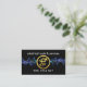 Eine blaue elektrische Ladung durchquert den Weltraum, um eine goldene Zuhause mit einem elektrischen "Buchstaben-e"-Schaltbild Power. Ganz oben steht der Firmenname "Elektroarbeit & Dienstleistungen", den Sie neben den Kontaktdaten in der Nähe des Basisbereichs ändern können. Auf der Rückseite, in einem schwarzen Cover, sind die Kartendetails auf dem verlassen mit dem goldenen Buchstaben-e-Logo oben platziert. Danach folgen Ihr Name und Ihre Kontaktdaten. Eine großartige Karte für Elektriker.
