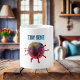 Bleibe Zuhause Coffee Tasse Ein nahtloses Textdesign über diese historische Zeit, in der die ganze Welt vor großen Herausforderungen steht, die Covid-19 mit sich bringt. Dieses Tasse-Design enthält eine Collage aus Virengrafiken und Text auf dunklem Hintergrund.