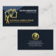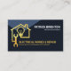 Ein ganz blaues Cover wird durch eine kreative goldene Zuhause-Stromkreisgestaltung verstärkt. Oben an der Spitze liegt Ihr angesehener Name und Ihr Jobtitel. In der Nähe der Basis befindet sich der Firmenname und seine Kontaktdaten. Oben ist ein goldenes "Zuhause-Elektromagazin"-Logo, das Sie verwenden können. Danach folgen Ihr Name, die Kontaktdaten und ein Slogan, um Ihr Unternehmen zu veröffentlichen. Eine großartige Karte für elektrische Themen.