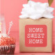 Coral rosa modernes geometrisches Muster, Zuhause-Süßes Zuhause-Individualtext, schlichtes, elegantes Zitat-Design, Neuling-Geschenk
