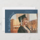 Moderne und wunderliche Abschluss-Ankündigungskarte mit einem Foto auf der Vorderseite und einem auf der Rückseite. Der Text sagt "die Zukunft sieht hell" in skurriler Handschrift. Fügen Sie den Namen des Absolventen, Informationen und eine Nachricht hinzu, um diese Karte zu personalisieren. Marineblau.