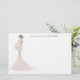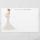 Personalisierte Mitteilungskarten mit einer illustrierten Braut. Zahlreiche Hochzeitskleidung, Blume-Bouquets, Frisuren und Hauttöne. Auf der Rückseite der Notenkarte befindet sich ein Spitzenmuster.