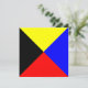 Nautical Flag Signal Zulu Letter Z Square Einladungskarte. Von den nautischen Flaggen der Reihe A (Alpha) bis Z (Zulu) bedeutet diese Code-Karte mit Meereszeichen "Zulu" - Buchstabe Z mit einem gelben, einem blauen, einem roten und einem schwarzen Dreieck. Diese quadratische Karte ist vollständig anpassbar, fügen Sie Ihre Texte und Bilder! Diese nautische Flaggenkarte ist eine hervorragende Einladungskarte für eine nautische Party-Dekoration oder eine Geburtstagskarte für Segelboote oder Yachten, die Wassersportsegler oder Skipper-Freunde besitzen, deren Name mit dem Buchstaben "Z" beginnt.