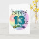 Gelukkige 18e verjaardag kaart. Leuk als cadeau voor die Aachttien ist geworden. Regenboot Kleuren. 18 ist in der Blauwe kleur. Personaliseren door de naam te veranderen aan de binnenkant.