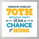 Dekoratives und farbenfrohes 70. Geburtstags-Zitat-Sprichwort mit lustigen Worten wie Weekend Forecast 70. Geburtstagsparty mit einem Wechsel von Schlägern. Herzlichen Glückwunsch zum 70. Geburtstag Ihrer Lieben zum Beispiel Ihre Oma, Opa, Vater, Mutter, Onkel oder Tante. Alles Gute zum 70. Geburtstag!