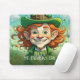 Ein fröhliches junges Mädchen, gekleidet als Koboldtran mit Aufregung, mit einem wunderschön verpackten goldenen Geschenk. Sie trägt ein lebendiges, grünes Outfit mit einem Hut, der mit Kleeblättern, einer Bogen-Krawatte und goldenen Knöpfen geschmückt ist. Der Hintergrund erfasst eine festliche Stadtszene mit Konfetti in der Luft und verstärkt den fröhlichen Geist des St. Patrick’s Day. Das Bild strahlt Glück, Glück und Feiern aus.