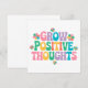 Erleben Sie eine hellere Einstellung mit dieser aufregenden "Grow Positive Thoughts"-Grußkarte mit skurrilen, farbenfrohen Blume und motivierend Schriften. Dieses fröhliche Kunstwerk ermutigt zur Achtsamkeit, zur Liebe des Selbst und zum persönlichen Wachstum. Es macht es zu einem perfekten Geschenk oder persönlicher Erinnerung, positive Bilder bleibe und gute Lebensbedingungen zu verbreiten. Dieses inspirierte Design bringt Schönheit und Ermutigung in den Alltag.