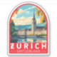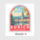 Zurich Retrovektor-Reisedesign. Die malerischen Gassen der Altstadt, auf beiden Seiten des Flusses Limmat, spiegeln ihre prämittelalterliche Geschichte wider.