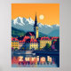Die atemberaubende Zürichschweiz zeigt eine ruhige Alpenlandschaft, farbenfrohe Häuser und einen Kirchturm, der auf einem friedlichen See reflektiert. Ideal für Liebhaber landschaftlicher Bergaussichten, bezaubernder Architektur und lebendiger Landschaften.