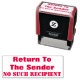 Dieses Design der Briefmarke enthält die Botschaften "An den Absender zurückkehren" und "KEIN SOLCHER EMPFÄNGER". Es kann verwendet werden, um anzugeben, dass die erhaltene Briefpost an die falsche Adresse geliefert wurde oder der Empfänger unbekannt ist, und an den Absender zurückzusenden.