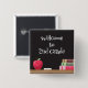 Begrüßen Sie Ihre Schüler am ersten Schultag mit den quadratischen Button-Buttons, die ein Imitat-Tafel , einen Apfel , ein Stück Kreide und einen kleinen Bücherstapel enthalten. © ArianeC Illustrations-Alle Rechte vorbehalten