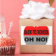 Ein lustiges Rückspiel zum Schuldesign mit Bild und Text in rot, schwarz und grau. Originelles Design.