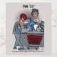 Eine Weinflasche mit einem witzigen Cartoon über die Einkäufe im Schulunterricht. Hintergrund und Text können personalisiert sein. Originale Kunstwerke von DB Cartoon.