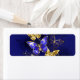 Zusammensetzung von luxuriösen Saphir- und Goldschmuckschmetterlingen auf blauem, texturiertem Hintergrund.