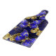 Zusammensetzung von luxuriösen Saphir- und Goldschmuckschmetterlingen auf blauem, texturiertem Hintergrund.