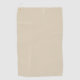 "Zwei Bilder eines hellbeigen Handtuchs mit einem dezenten karierten Muster. Das obere Bild zeigt eine vertikale Ansicht mit einem goldenen Ring in der oberen Ecke, während das untere Bild eine horizontale Ansicht mit demselben goldenen Ring an der Seite zeigt. Das Handtuch erscheint weich und texturiert."