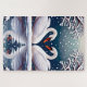 Tauchen Sie ein in die ruhige Schönheit des Winters mit unserem zauberhaften "Zwei elegante weiße Schwäne"-Puzzle mit zwei eleganten weißen Schwänen, die eine Herzform bilden. Diese bezaubernde Szene erfasst die Schwäne, die sich anmutig gegenüberstehen, Set vor einem Hintergrund eines ruhigen, reflektierenden Gewässers, das perfekt ihren majestätischen Formen entspricht. Schneebedeckte Bäume umrahmen diesen malerischen Rahmen, während zarte Schneeflocken sanft fallen und die ruhige winterliche Atmosphäre verstärken. Dieses Puzzle ist perfekt für Naturliebhaber und Rätsel-Liebhaber geeignet und bietet eine reizvolle Herausforderung, die Sie in eine friedliche, verschneite Landschaft führt.