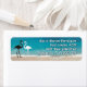 Zwei Flamingos Strand adressieren Etiketten mit drei oder vier Zeilen Text. Die mageren Labels der Strandszene sind in einem feinen Schriftart-Stil gehalten, der in Weiß und türkisblau gehalten ist. Das Flamingo-Paar ist schwarz-weiß.