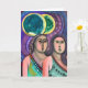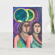Zwei Frauen unter dem Mond bunt abstrakte künstlerische künstlerische Arbeit. Das Hauptmerkmal ist die personalisierte Texterkennung, die auf dem Karteninneren ist. Es könnte ein Jubiläum, beste Freunde oder Valentinstag Karte sein.