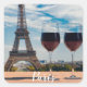 Zwei Glas Wein mit Eiffelturm Quadratischer Aufkleber
