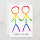 Diese Save the Date Karte zeichnet sich durch ein schönes und einfaches Design aus, um Ihre kommende Hochzeit bekannt zu geben. Die Grafik zeigt zwei Männer, in Form von eleganten Strichmännchen, die Hände halten. Die Figuren sind in einem wunderschönen Regenbogen gefärbt und symbolisieren Liebe und Diversity. Diese Karte ist ein wunderbarer Weg, um eine kohärente und sinnvolle Touch in Ihre Schreibwaren zu bringen und gleichzeitig den Gästen eine klare und elegante Möglichkeit zu geben, ihre Kalender zu markieren.