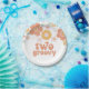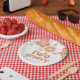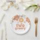 Retro inspirierte zwei großartige Teller zum 2. Geburtstag mit Blume im Stil der 70er Jahre und boho Schriftart und Farben.