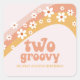 Retro inspirierte zwei großartige Aufkleber zum zweiten Geburtstag mit 70er-Jahren-Stil und boho Schriftart und Farben.